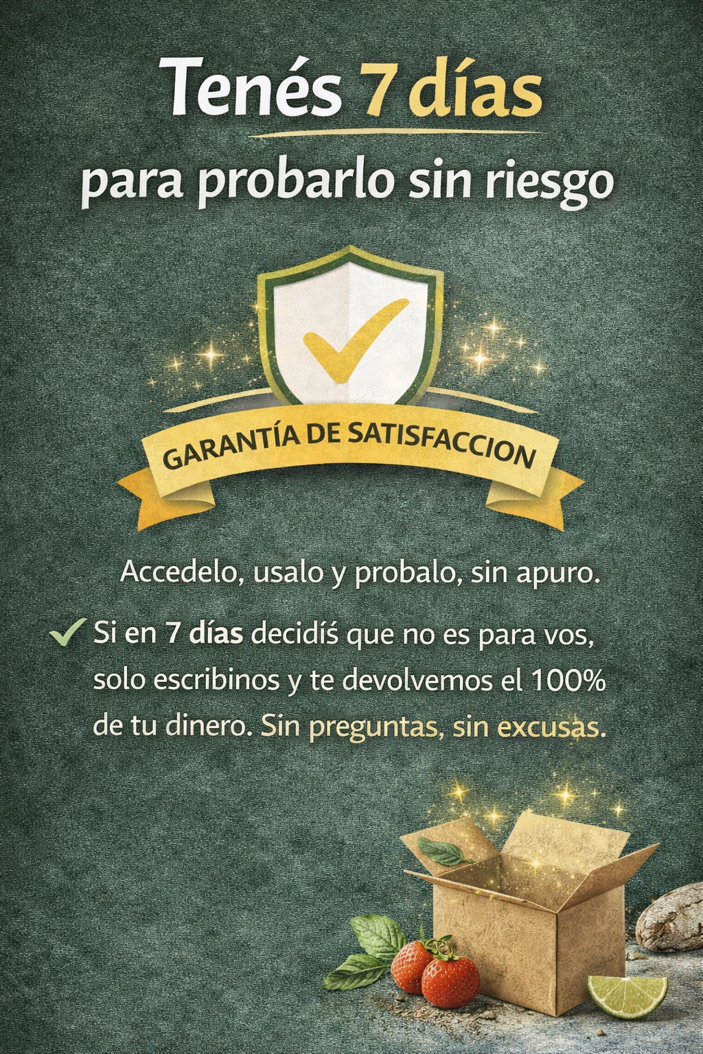 Garantía de Satisfacción: si tu ebook no te convence, tienes 7 días desde la compra para solicitar reembolso íntegro. Confiamos tanto en la calidad de nuestros contenidos que asumimos todo el riesgo: pruébalo y, si no es para ti, te devolvemos el dinero, sin complicaciones.